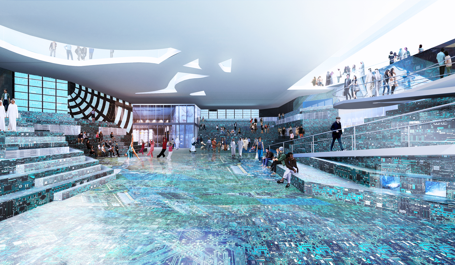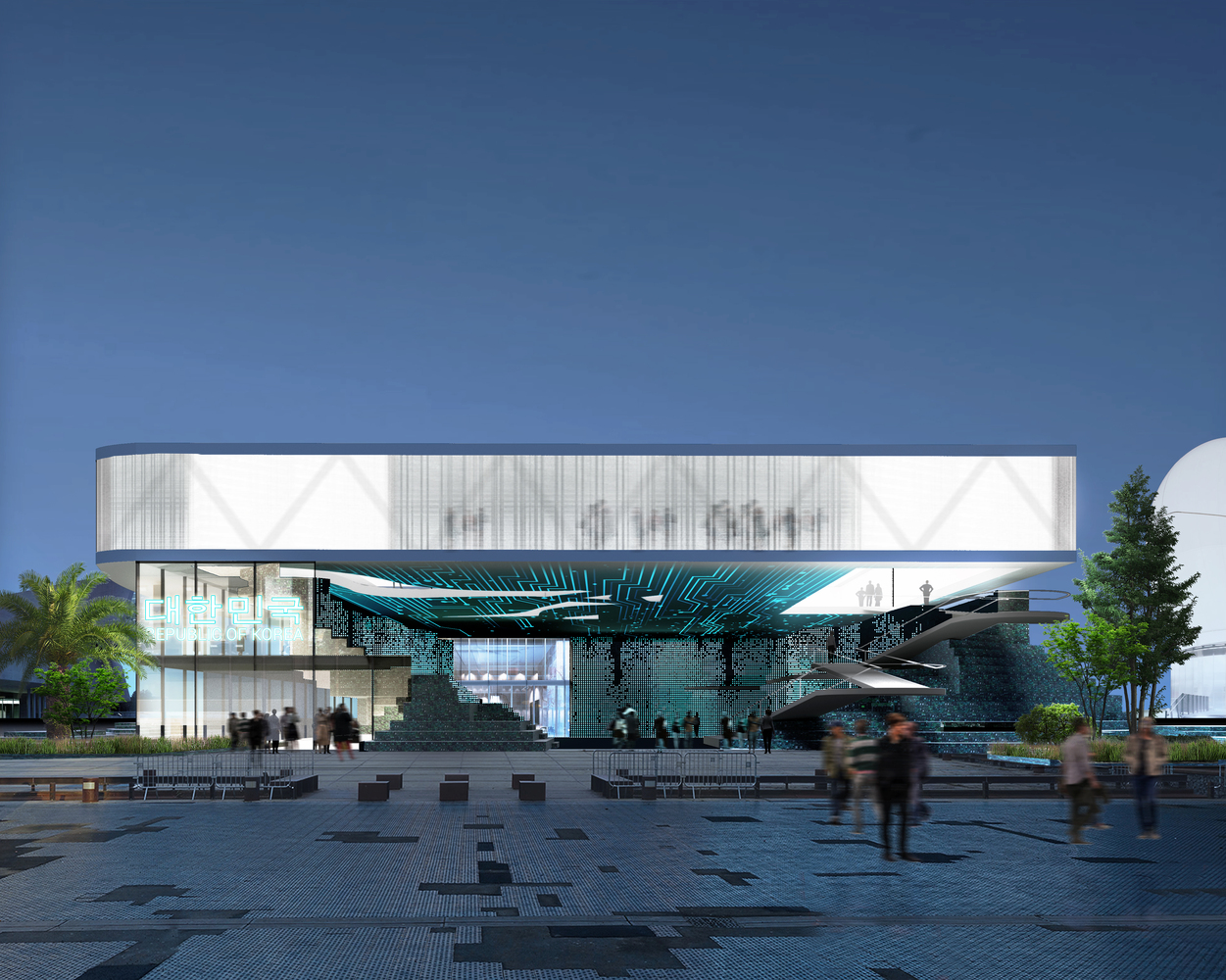 几十年来,韩国开放地接受了数字基础设施的可能性,如今已成为5G新技术的前沿国家。这个设计背后的想法是研究硬件和软件之间的对比,云端的轻盈和背后无形的硬件。世博会的地面是由电子垃圾材料制成的,这些材料以类似地形的形式在现实生活中表现出来。陈旧的硬件为备受期待的数字技术提供了一个展示平台,而且这些技术将在圆形剧场上全面亮相。因为展馆的战略设计是作为连接人们一种工具,在展馆内,游客可以漫步其中并创建自己的路径。
